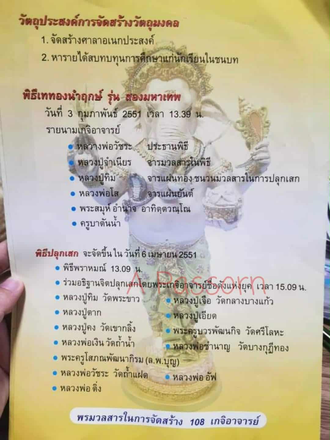 เคาะเดียว +++++ พระบูชา พระพิฆเนศ รุ่นสองมหาเทพ หลวงพ่อวัชระ วัดถ้ำแฝด กาญจนบุรี ปี 51 หน้าตัก 6 นิ้ว