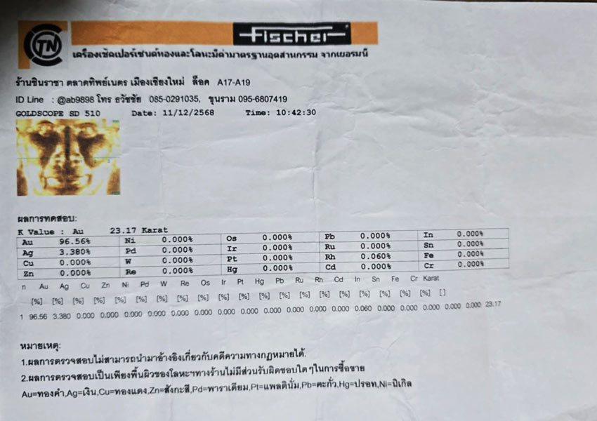 รุ่นเจริญพร ๒๕๕๙ เนื้อทองคำ 96.56 % น้ำหนัก 20.7 กรัม