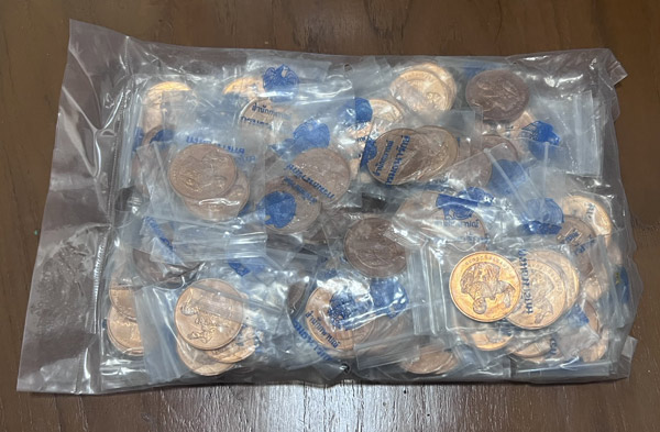 จ.น. 100 เหรียญ ถุงพลาสติกนอก..ถุงใส่เหรียญแยก ปั้มธนารักษณ์เดิมๆเลย...เนื่องในวโรกาสมหามงคลที่พระบาทสมเด็จพระปรมินทรมหาภูมิพลอดุลยเดช ร.9 ทรงครองศิริราชสมบัติครบ 60 ปี และทรงเจริญพระชนมพรรษา 80 พรรษา ......... เหรียญทองแดง ขัดเงา..ทรงยินดี ที่ระลึกสร้างพิพิธภันฑ์พุทธมณฑล 2549 พร้อมซองธนารักษณ์เดิม ประมูลทีเดียวจำนวน 100 เหรียญ...UNC......พระเจ้าหลานเธอพระองค์เจ้าพัชรกิติยาภา เสด็จแทนพระองค์ไปในการจุดเทียนชัยพิธีมังคลาภิเษกเหรียญทรงยินดี ณ ลานองค์พระศรีศากยะพลญาณประธานพุทธมณฑลสุทรรศน์ จ.นครปฐม กรมธนารักษณ์ จัดสร้าง ให้จอง 160 บาท ....."""" เหรียญ..สวยเดิมวิ้งๆทุกเหรียญ..UNC.ข้างนอกขายร้อยกว่าบาทหรือร่วมร้อยบาท..........แท้..ถูก..ดี..ประมูลทีเดียว 100 เหรียญ.ถุงเดิมๆเลย ไว้แจกได้ทุกงาน