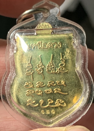 เนื้อทองเหลือง ลงยาเขียว-แดง-ดำ-ขาว หมายเลข ๒๑๔...พร้อมเลี่ยมกันน้ำ พร้อมกล่อง