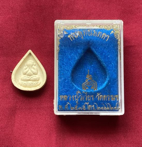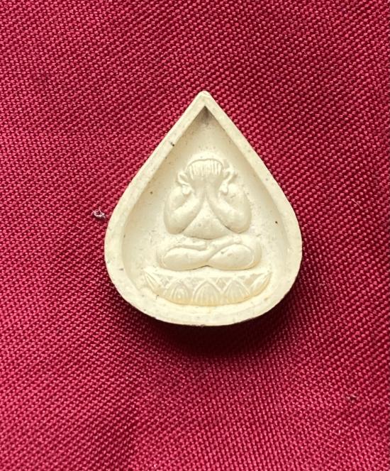 พระผงปิดตาพุทธเมตตา พิมพ์หยดน้ำหลังยันต์พุทซ้อน เนื้อผงพุทธคุณ หลวงปู่วิเวียร วัดดวงแข กทม. มีกล่อง |