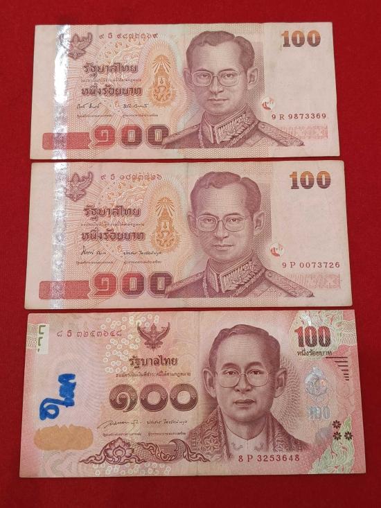 ธนบัตร 100 บาท 3 วาระ สภาพผ่านการใช้งาน