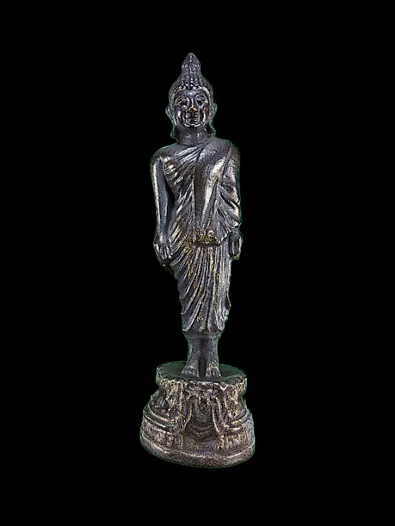 รูปหล่อ พระพุทธเจ้าเปิดโลก หลวงปู่หลิว วัดไร่แตงทอง เนื้อทองเหลืองรมดำ ปี 2539