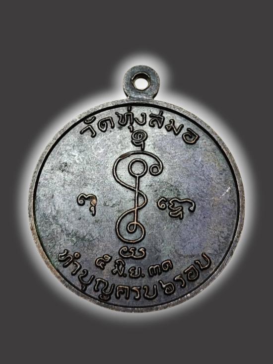 A5158.เหรียญหลวงพ่อเบี่ยง วัดทุ่งสมอ กาญจนบุรี เหรียญครึ่งองค์ เนื้อทองแดง หลังยันต์ รุ่นอายุ 6 รอบ ปี 31 เดิมๆ สวยๆครับ เคาะเดียวเเดง