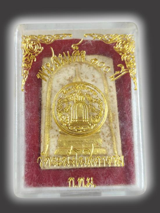 A5162.พระสมเด็จ ๑๐๐ ปี วัดระฆังโฆสิตาราม กทม เนื้อผงททอง กล่องเดิม เคาะเดียวเเดง |