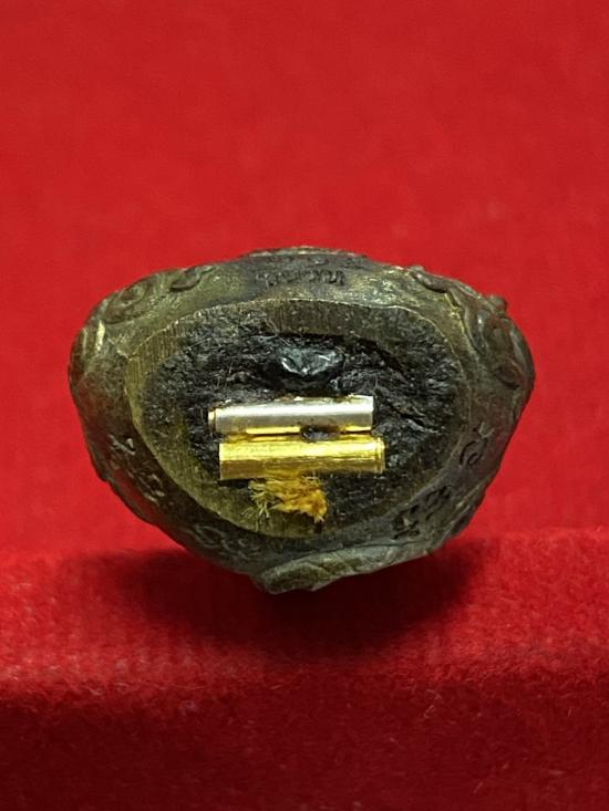 ก้นฝังตะกรุดทองคำ+ตะกรุดเงิน+มวลสาร+พลอยเสก+จีวร