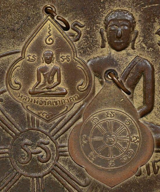 เหรียญดอกจิก ลพ.วัดเขาตะเครา เนื้อทองแดงกะไหล่ทอง ปี2494 จ.เพชรบุรี