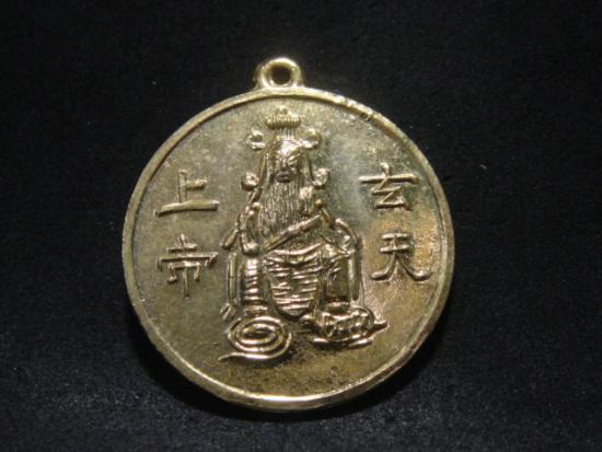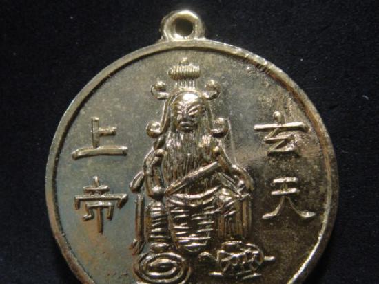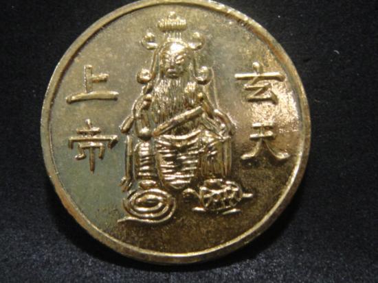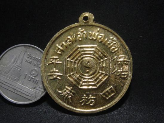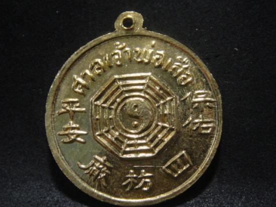 ชื่อพระเครื่อง วัดใจเคาะเดียว.......100.......เหรียญกลม ศาลเจ้าพ่อเสือ เสาชิงช้า กทม กะไหล่ทอง