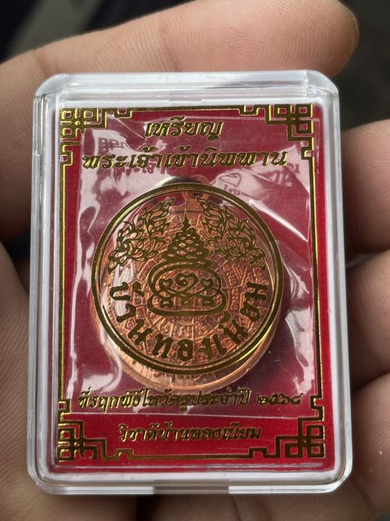 เหรียญพระเจ้าเข้านิพพาน ด้านหลังยันต์มงกุฎพระพุทธเจ้า รู่นแรก เนื้อสตางค์แดง จำนวนการสร้าง 5,000 เหรียญ ที่ระลึกงานไหว้ครู 2568