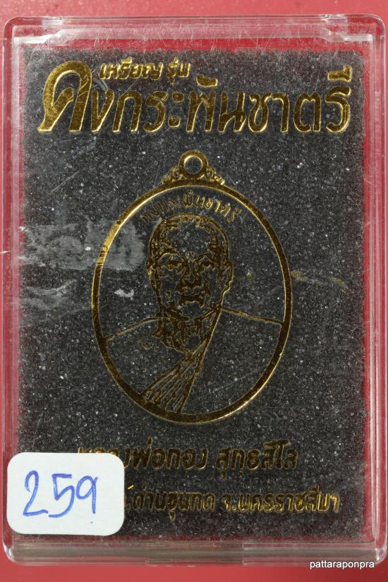 เหรียญสี่เหลี่ยมใหญ่ หลวงพ่อทอง รุ่นคงกระพันชาตรี ปี 2565 เนื้อตะกั่วหลังเรียบ หมายเลข 259