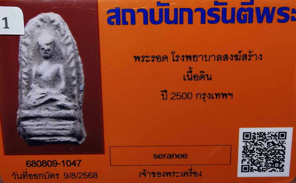 พระรอด โรงพยาบาลสงฆ์ เนื้อดิน มีหน้ามีตา ปี2500 จ.กรุงเทพฯ + บัตรG-pra สภาพสวยเดิมค่ะ