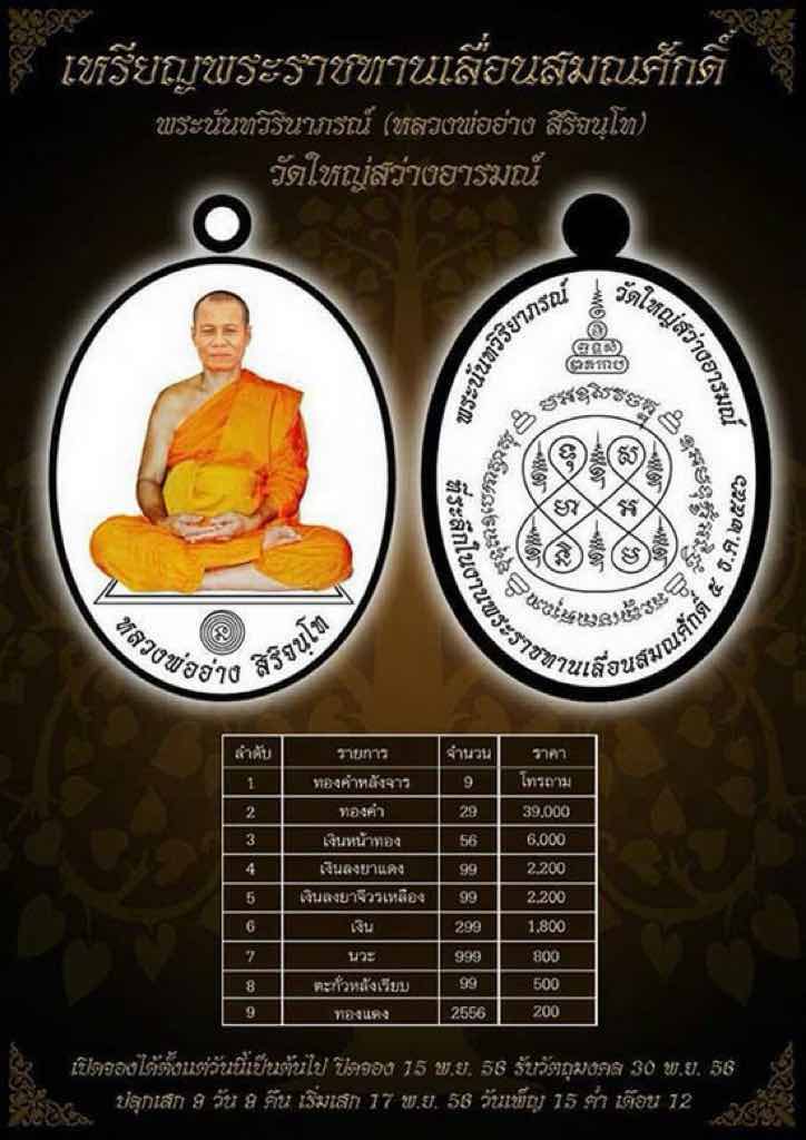 400.- ems เหรียญพระราชทานเลื่อนสมณศักดิ์ ปี56 หลวงพ่ออ่าง วัดใหญ่สว่างอารมณ์ จ.นนทบุรี เป็นรุ่นที่น่าใช้อีก 1 รุ่น เพราะ ปลุกเสก 9วัน 9คืน เสกวันแรก วันเพ็ญ 15 ค่ำ เดือน 12 เนื้อนวะโลหะ #ราคาจอง800 |