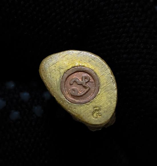 พระกริ่งเนื้อโลหะผสม ตอกโค๊ต ด้านหลัง ใต้ฐานอุดกริ่งนะตอกโค๊ตเลข 5 ไม่ทราบที่