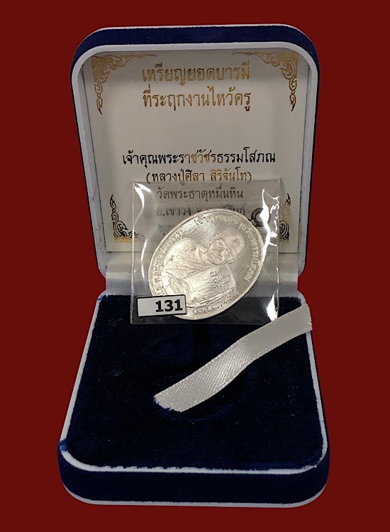 หลวงปู่มหาศิลา ยอดบารมี เนื้อเงิน ผิวกระจกใสวิ้งๆ จมูกโด่ง เลข 131 กล่องเดิม พระสวยแชมป์ๆ