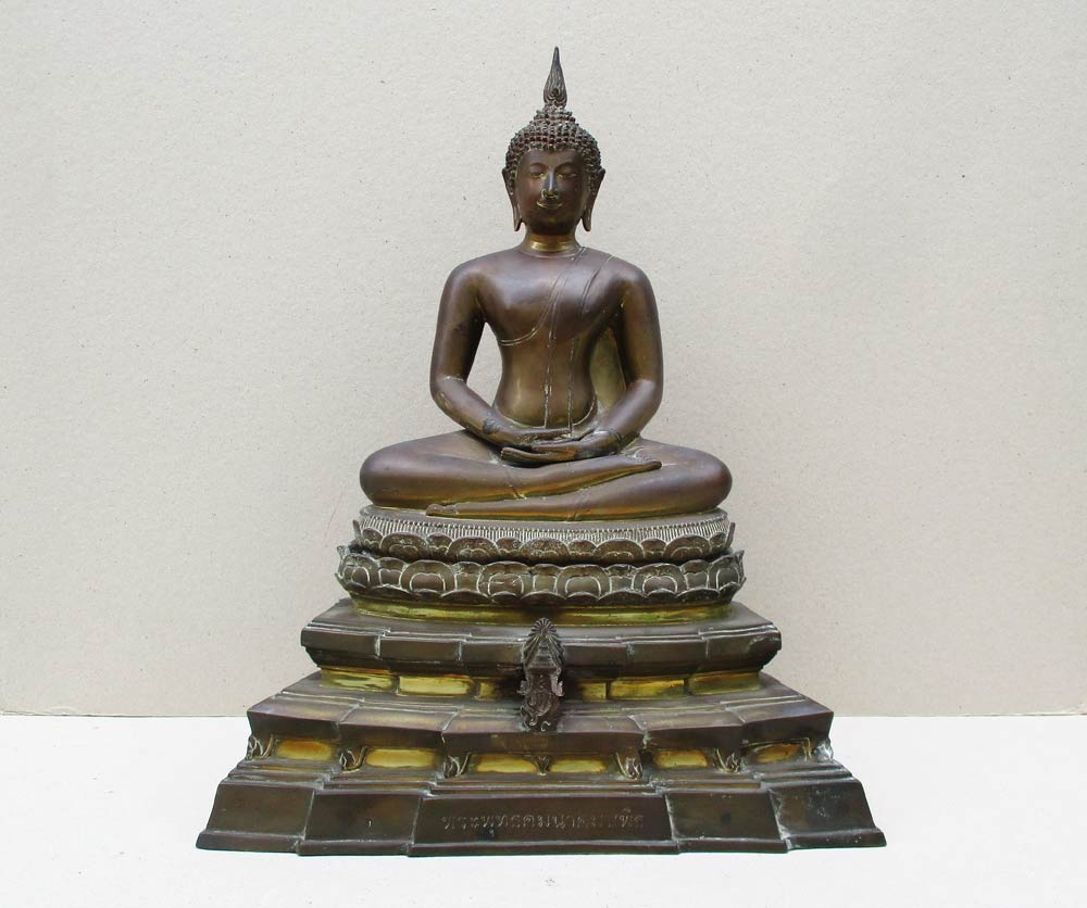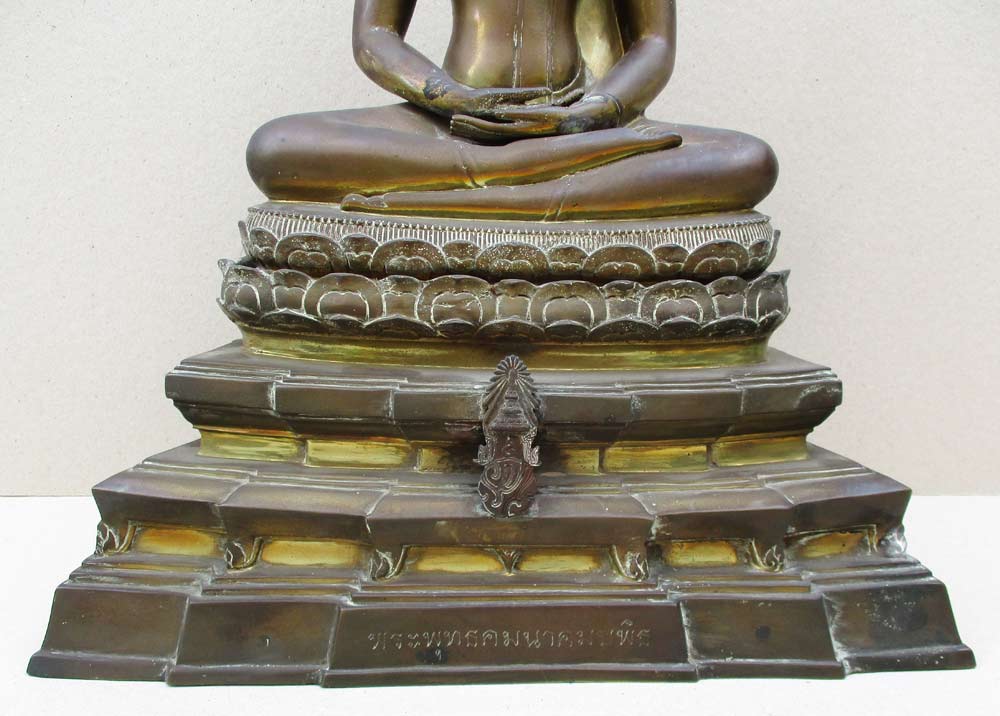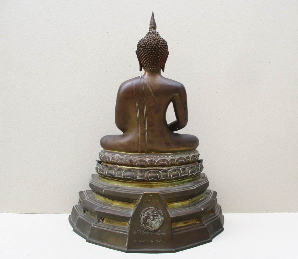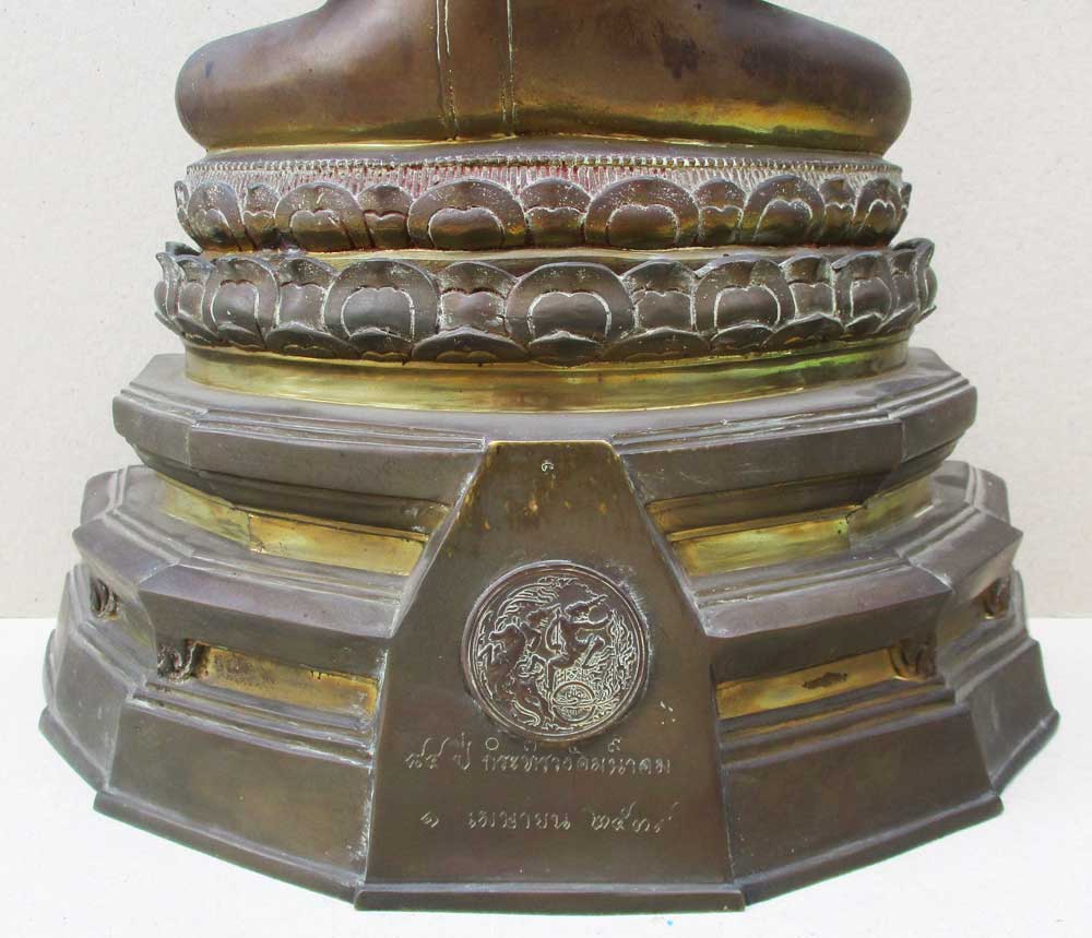 พระพุทธคมนาคมบพิธ ฐานภปร. ( พระพุทธสิหิงค์จำลอง ) จัดสร้างโดยกระทรวงคมนาคมพ.ศ.2539 หน้าตัก 9 นิ้ว ตอกโค๊ต ตอกเลข เนื้อโลหะขัดเงาผิวหิ้ง วรรณะออกแดง !!