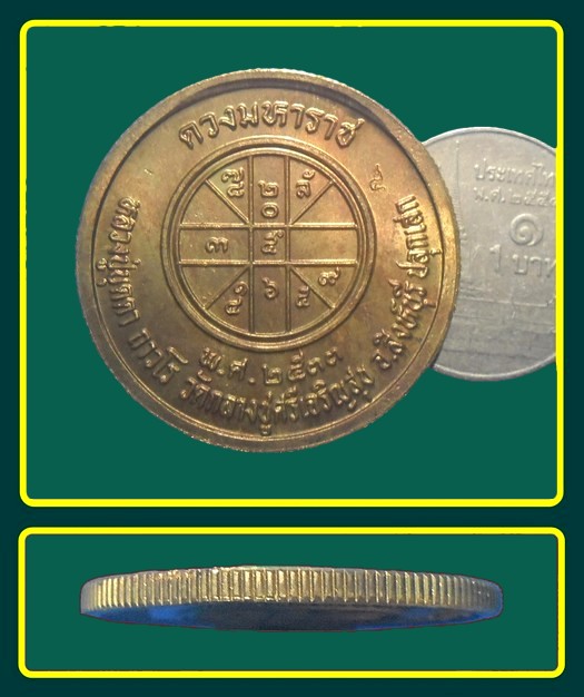 นวโลหะ ขอบสตางค์ -180-เหรียญ ร.5 หลังดวงมหาราช ลป.บุดดา วัดกลางชูศรีเจริญสุข จ.สิงห์บุรี พศ. 2533 ตอกโค้ดเลข5 |