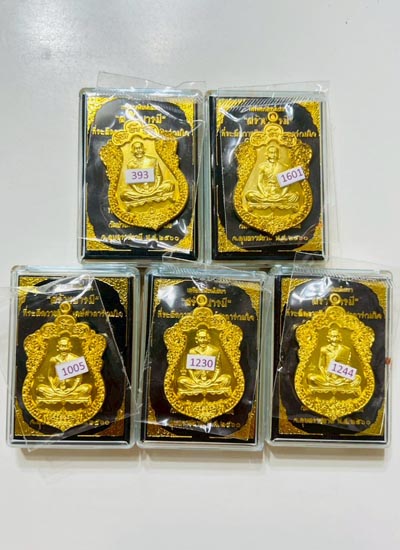 วัดใจ เหรียญสร้างบารมี หลวงปู่บุญ ธมมธีโร วัดบ้านหมากมี่ จ.อุบลราชธานี เนื้อทองทิพย์ 5 เหรียญ |