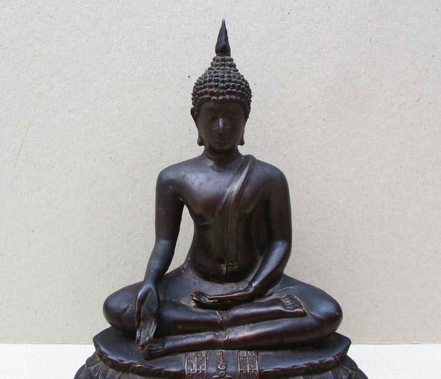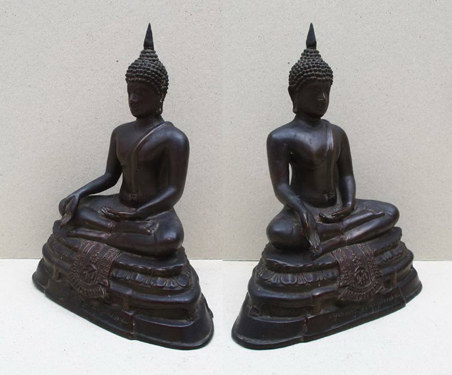 พระบูชาปางประทานพร ฐานผ้าทิพย์มีอักษรย่อ ส.น.ม. อนุสรณ์วางศิลาฤกษ์หอประชุม 7 มี.ค.17 เนื้อโลหะวรรณะแดงมันเทศ เทดินไทย !!