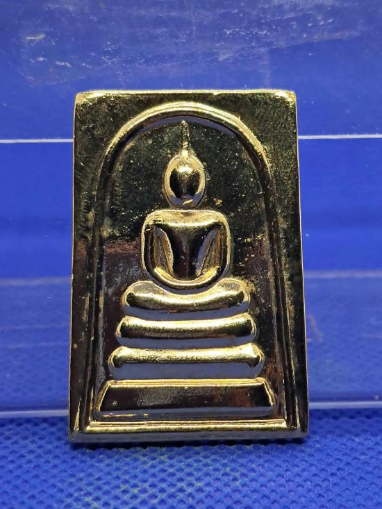 พระสมเด็จปั๊ม หลังอัญเชิญพระคาถาชินบัญชร เนื้อกะไหล่ทอง วัดอินทรวิหาร ปี 2546 สภาพสมบูรณ์ เคาะเดียว