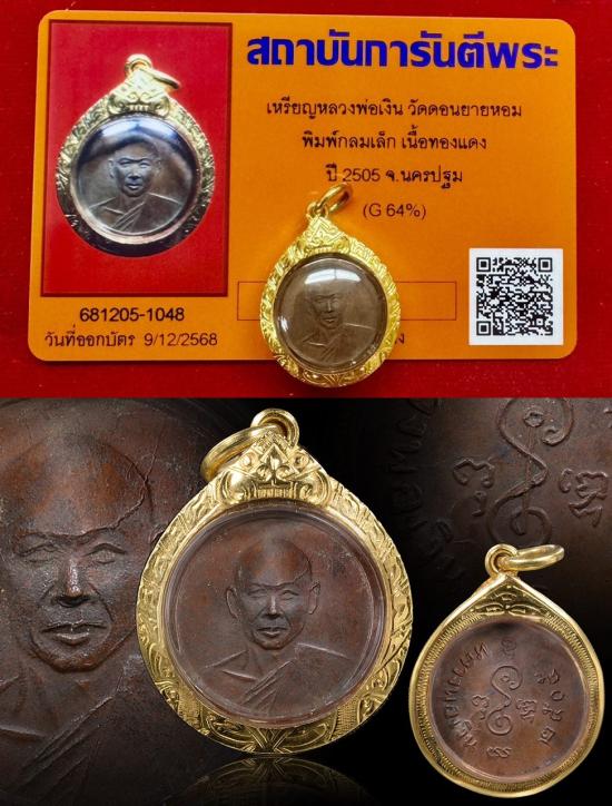 เหรียญนิยม+ทองคำหนา "ทองคำทำมาเกือบ 8,000 บาท" เหรียญนิยมกลมเล็กหลวงพ่อเงิน วัดดอนยายหอมปี2505(เหรียญสตางค์)หลวงพ่อเงิน จนทสุวณโณ "พิมพ์คิวแตก นิยมอีกพิมพ์มาพร้อมเลียมทองคำอย่างหนาครับ