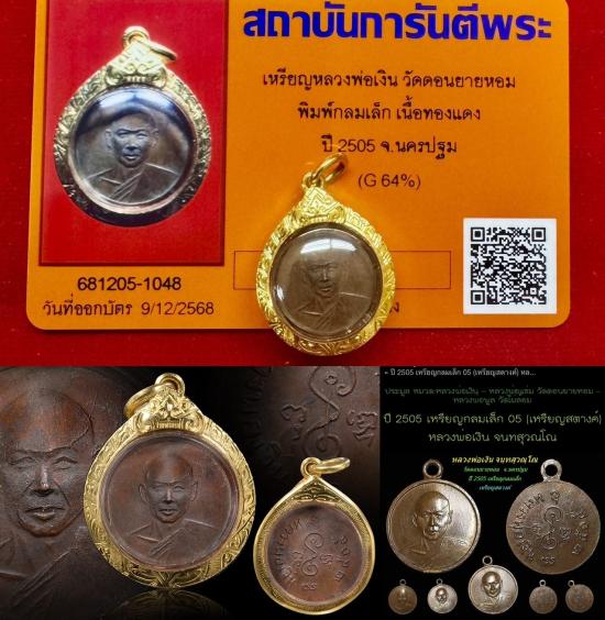 เหรียญกลมเล็กหลวงพ่อเงิน วัดดอนยายหอมปี2505(เหรียญสตางค์)หลวงพ่อเงิน จนทสุวณโณ "พิมพ์คิวแตก นิยมอีกพิมพ์มาพร้อมเลียมทองคำอย่างหนา ดังนั้นเหรียญกลมเล็ก05 (เหรียญสตางค์) หลวงพ่อเงิน จนทสุวณโณ ปี 2505