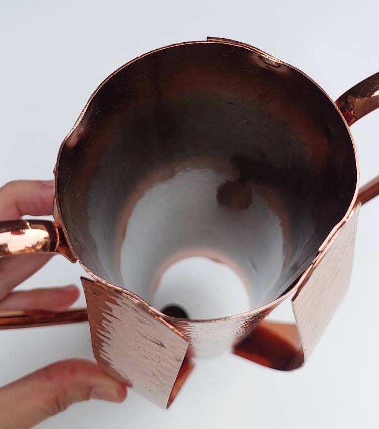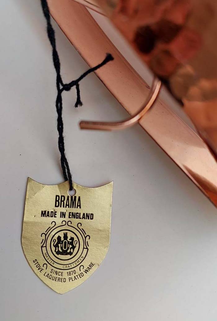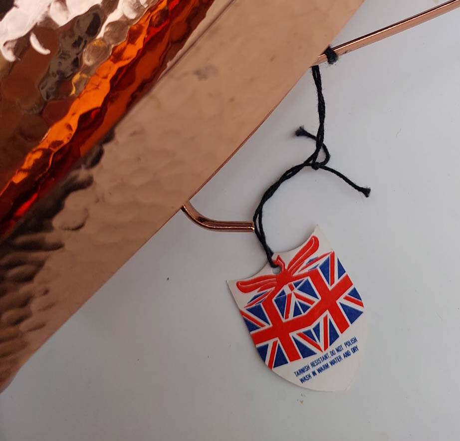แจกันดอกไม้บรอนซ์ยี่ห้อ Brama จากอังกฤษ สภาพวินเทจ ไม่เคยใช้งาน ผิวเคลือบทองแดงแบบตอกลายหายาก