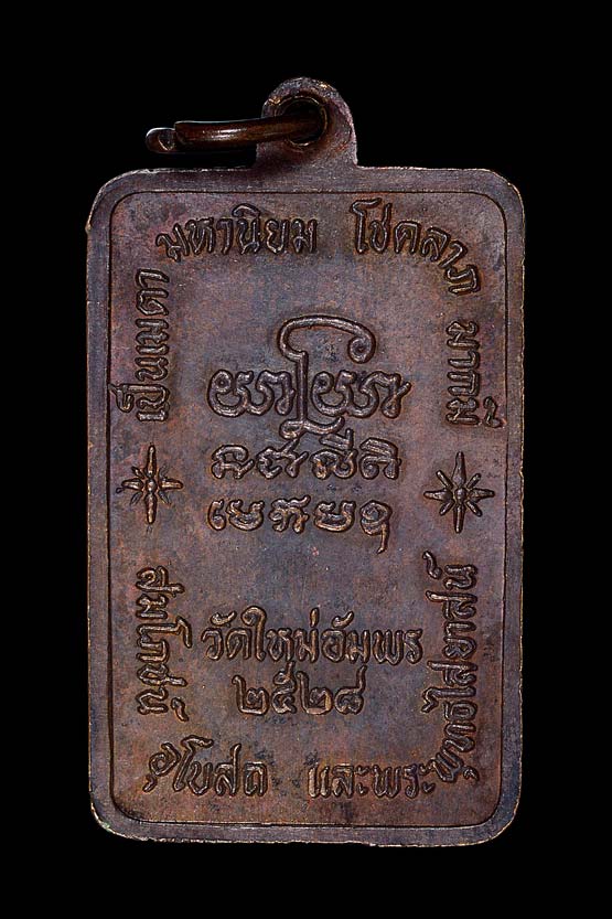 เหรียญทำน้ำมนต์ ( กวนโอ่ง ) สมโภชน์อุโบสถ และ พระพุทธไสยาสน์ จัดสร้างโดย วัดใหม่อัมพร ( เนื้อทองแดง , บล็อกเมตา ) พ.ศ.2528