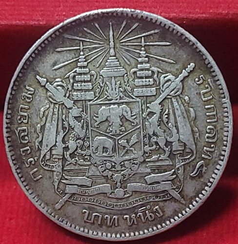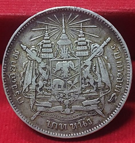 เหรียญบาทหนึ่ง รัชกาลที่ 5 ไม่มี ร.ศ. |
