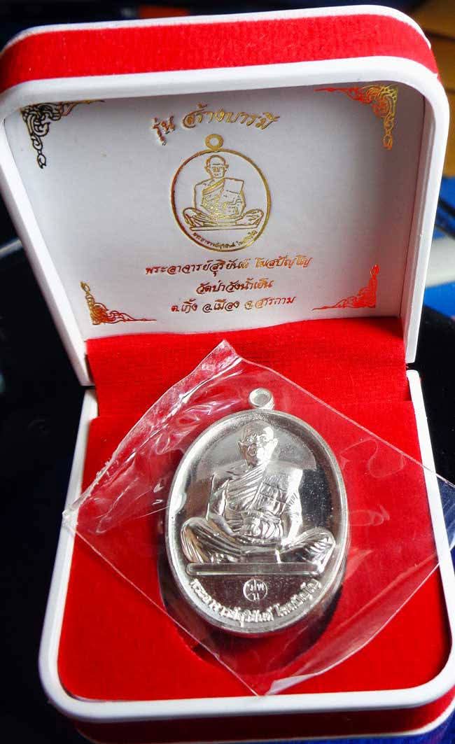เหรียญหลวงพ่อสุริยันต์ โฆสปัญโญ วัดป่าวังน้ำเย็น รุ่นสร้างบารมี เนื้อเงิน ปี 2567 หมายเลข 83 พร้อมกล่องเดิม จ.มหาสารคาม |