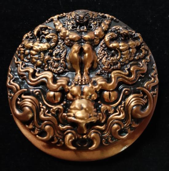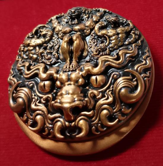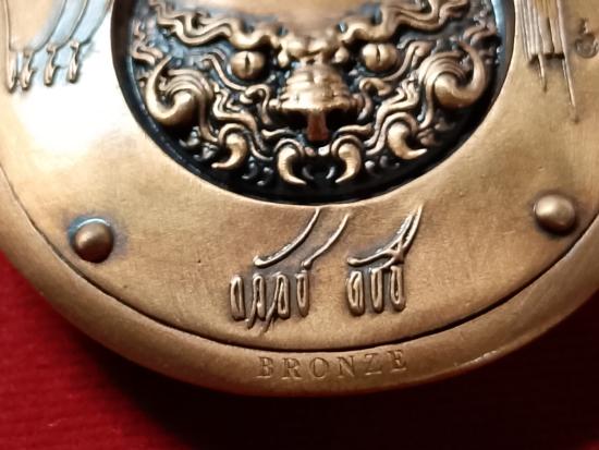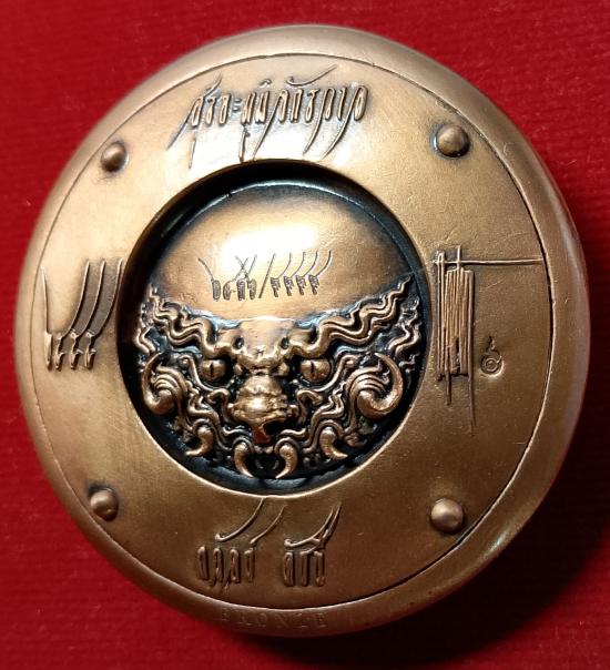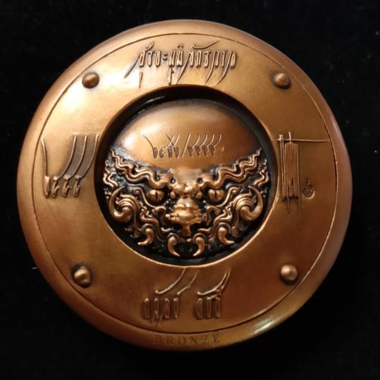 **เหรียญสุริยะภูมิจักรวาล สร้างโดยอาจารย์ ถวัลย์ ดัชนี (ศิลปินระดับโลก ฝีแปรงแบบเฉียบพลันและศิลปินเเห่งชาติ) เนื้อบรอนซ์ ผลงานมาสเตอร์พีส พร้อมอุปกรณ์ครบชุด กล่องใน-กล่องนอก,