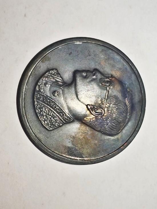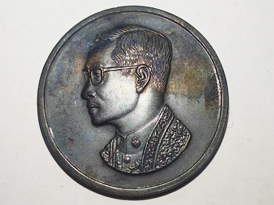 เหรียญในหลวง รัชกาลที่ 9 รุ่นคุ้มเกล้า สร้าง พศ 2522 เนื้อนวะโลหะ ในตลับพลาสติกกลมเดิมๆ
