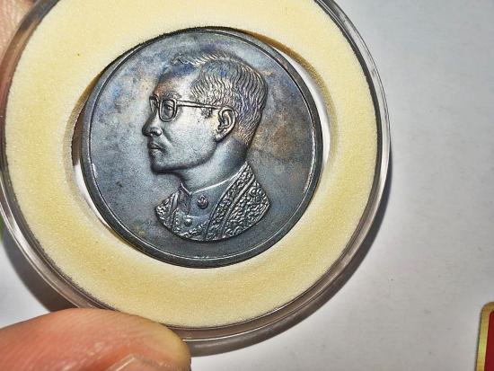 ชื่อพระเครื่อง เหรียญในหลวง รัชกาลที่ 9 รุ่นคุ้มเกล้า สร้าง พศ 2522 เนื้อนวะโลหะ ในตลับพลาสติกกลมเดิมๆ