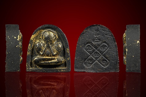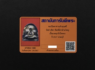พระปิดตาเจ้าคุณศรี วัดอ่างศิลา พิมพ์นักกล้ามใหญ่ เนื้อผงคลุกรักปิดทอง ปี 2507 พร้อมบัตรรับรอง G