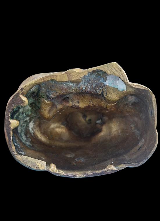 พระสังกัจจายน์ไม่ทราบที่ เนื้อทองเหลืองเก่า ความสูง เกือบ 6 นิ้ว หน้าตัก 4 นิ้วครึ่ง |