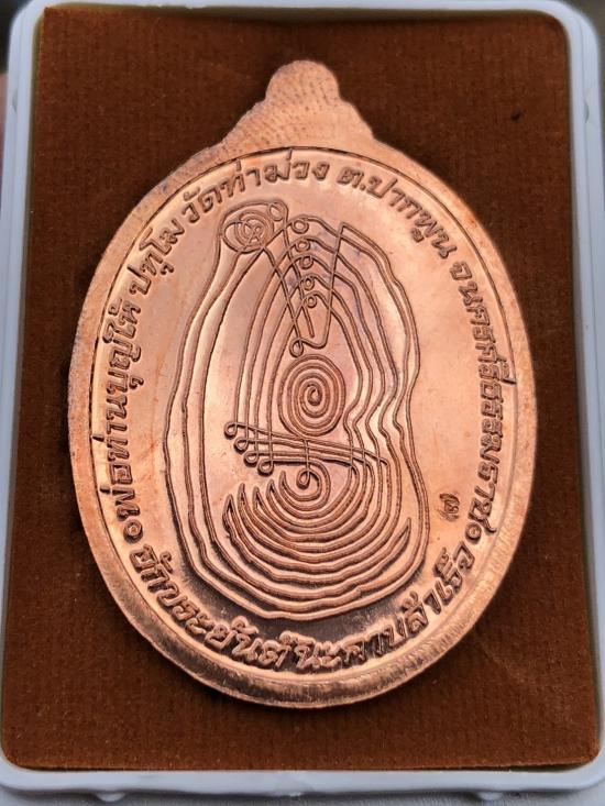 เหรียญรุ่นเจริญพร พ่อท่านบุญให้ ปทุโม วัดท่าม่วง จ.นครศรีธรรมราช พ.ศ.2556 เนื้อทองแดงหน้ากากนวะ หมายเลข 7