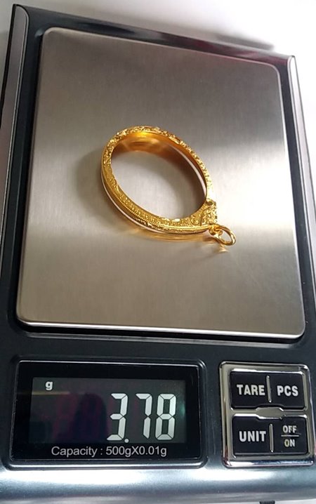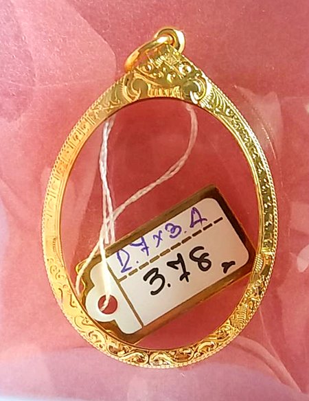 กรอบทองคำแท้ยกซุ้มบน-ซุ้มล่าง-ตีเกียวข้าง ใส่เหรียญไข่หลวงพ่อคูณปี19/ปรกหลวงปู่ทิม/พ่อท่าคลิ้ง/อ.นำ/อ.ฝั้น2-7/พ่อสุดบัวใหญ่/พ่อแดง/เกจิอื่นๆจอใน2.7+3.4ซม.น้ำหนัก 3.78กรัม