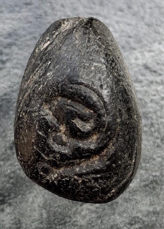 พระสมาธิ เนื้อผงคลุกรัก พิมพ็เม็ดน้อยหน่า ด้านหลังยันต์นะ เก่าไม่ทราบสำนัก