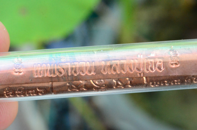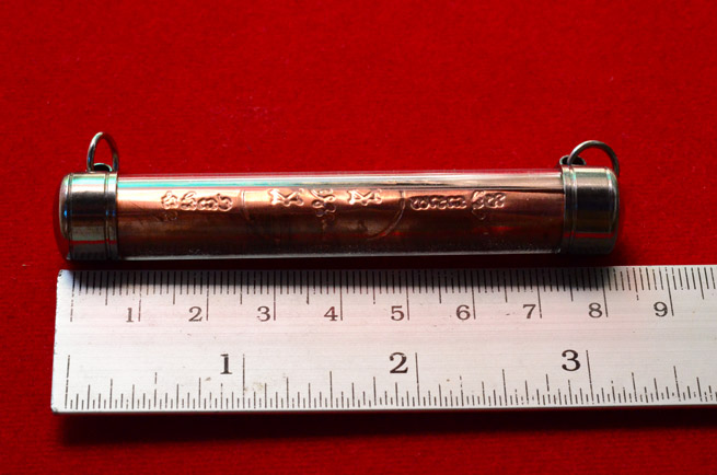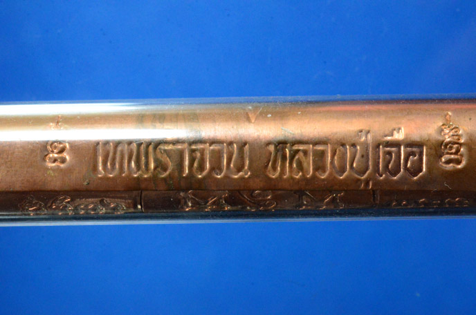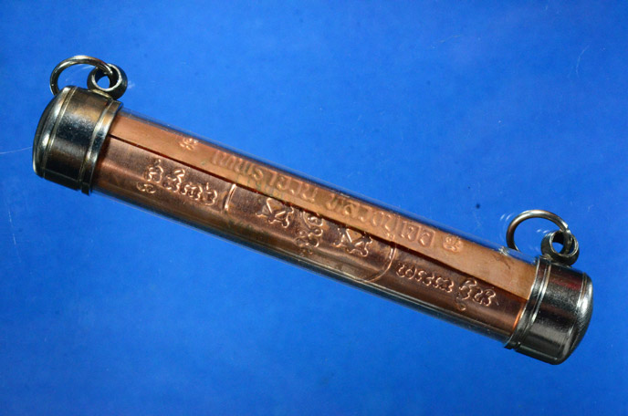 ตะกรุดเทพรัญจวน หลวงปู่เจือ วัดกลางบางแก้ว ปี ๒๕๕o ในวาระอายุครบ ๘๒ ปี องค์นี้เนื้อทองแดง ขนาดยาว ๓ นิ้ว เนื้อทองแดง สร้าง3,000 ดอก ครับ |