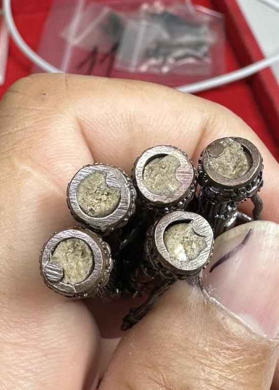 5 องค์ รูปหล่อยืนถือไม้เท้า อุดผงใต้ฐาน หลวงปู่หงษ์ พรหมปัญโญ สุสานทุ่งมน จ.สุรินทร์ ปี 2555 |