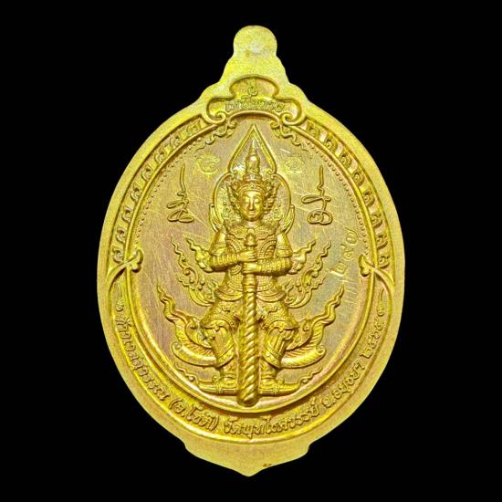 เหรียญท้าวเวสสุวรรณ รุ่น เหนือดวง พลิกดวง พระอาจารย์โชติ วัดพุทไธศวรรย์ จ.อยุธยา เนื้อชนวนรุ้ง หน้ากากทองแดงซาตินลงยาธงชาติ