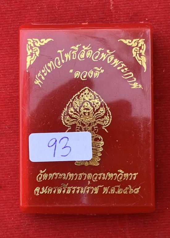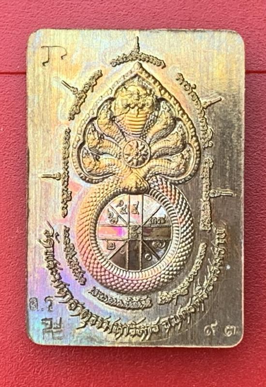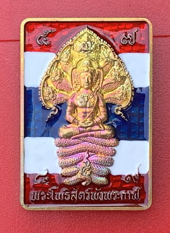 เหรียญพระโพธิสัตว์พังพกาฬ ดวงดี วัดพระมหาธาตุวรวิหาร จ.นครศรีธรรมราช เนื้อทองเหลืองรุ้งลงยาธงชาติ หมายเลข ๙๓