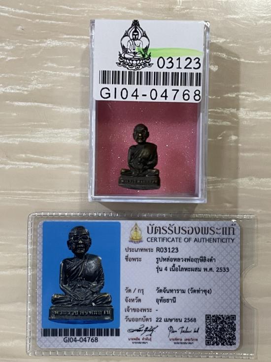 (เคาะแดง7900) +บัตรสมาคม รูปหล่อลอยองค์หลวงพ่อฤาษีลิงดำ รุ่น 4