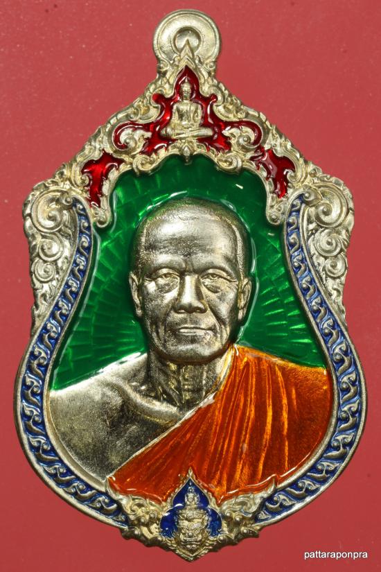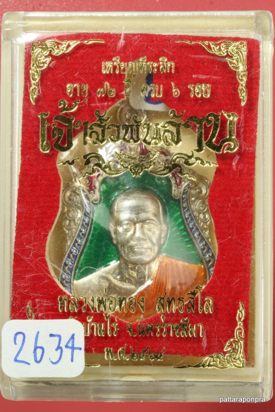 เหรียญเสมา หลวงพ่อทอง รุ่นเจ้าสัว ปี 2564 วัดบ้านไร่ เนื้ออัลปาก้าลงยาเขียว หมายเลข 2634
