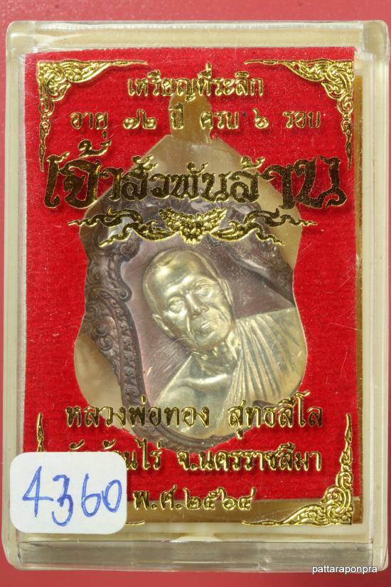 เหรียญเสมา หลวงพ่อทอง รุ่นเจ้าสัว ปี 2564 วัดบ้านไร่ เนื้อทองแดงหน้ากาก อัลปาก้า มีจารหลวงพ่อทอง หมายเลข 4360
