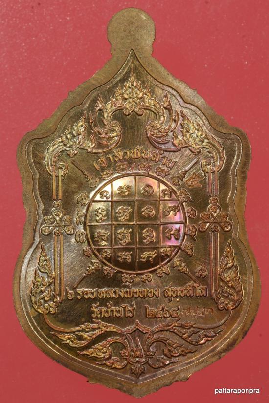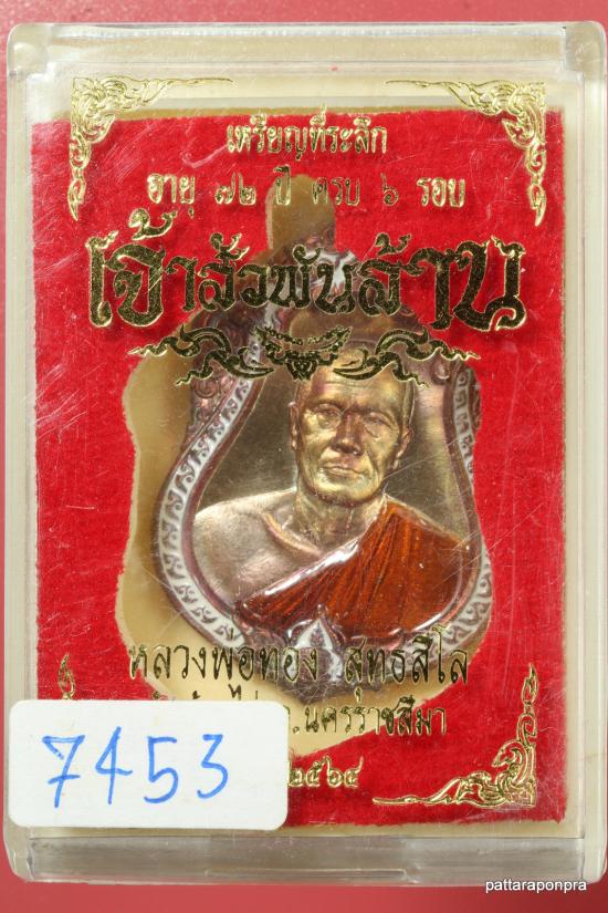 เหรียญเสมา หลวงพ่อทอง รุ่นเจ้าสัว ปี 2564 วัดบ้านไร่ เนื้อทองแดงลงยาขอบ ลงยาจีวร หมายเลข 7453