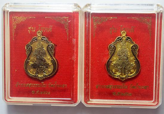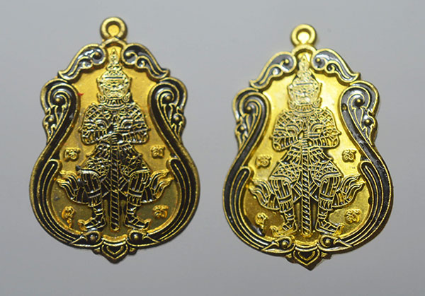 ท้าวเวสสุวรรณ วัดถ้ำยะลา รุ่น โชคดี 61 พิมพ์ใหญ่ เนื้ อทองระฆัง ลงยา ขอบดำ 2 เหรียญ เลข 2460+4478