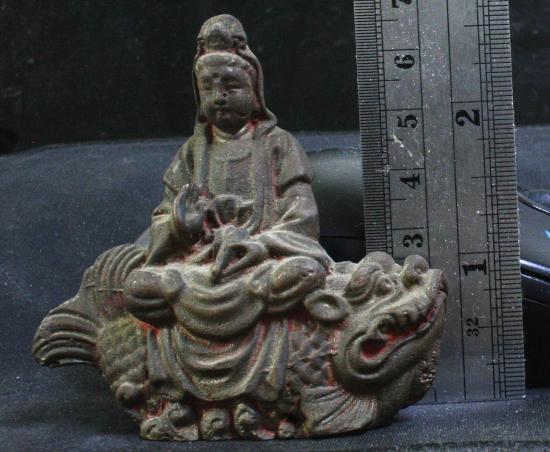 รูปหล่อโลหะ เจ้าแม่กวนอิม ประทับบนปลามังกร สวย คลาสิค ไม่ทราบที่ ชมก่อน |