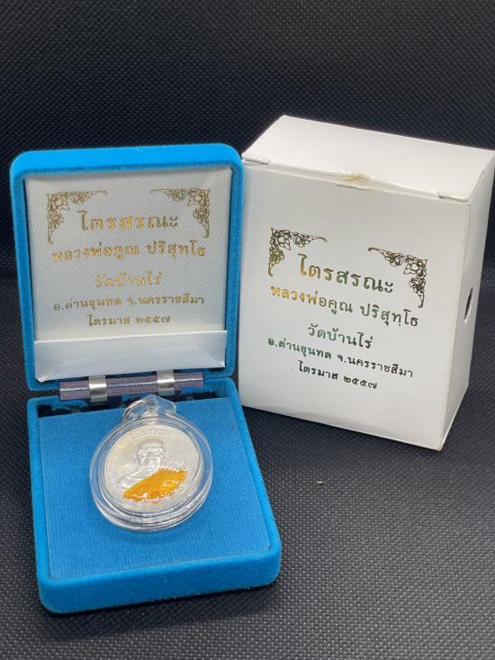 วัดใจ !! เคาะแรก 200 เหรียญหลวงพ่อคูณ ปริสุทโธ วัดบ้านไร่ รุ่นไตรสรณะ จัดสร้างปี 2557 เหรียญจากชุดกรรมการอุปถัมภ์ เนื้อเงิน ลงยาจีวรเหลือง หมายเลข 149