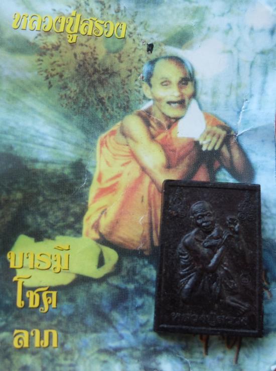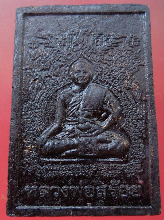 พระผงรูปเหมือน หลวงปู่สรวง หลังหลวงพ่อสร้อย เนื้อไพลดำ ปี 2526