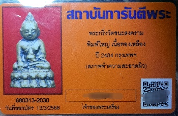 รายละเอียด พระกริ่งวัดชนะสงครามพิมพ์ใหญ่สร้างและพุทธาภิเษกในปีพ.ศ 2484 มีสมเด็จพระสังฆราชแพเป็นประธานฝ่ายสงฆ์มีเจ้าคุณศรีสนธิ์วัดสุทัศน์เป็นประธานฝ่ายดำเนินการ เป็นงานสร้างพระครั้งยิ่งใหญ่เพื่อแจกแก่ประชาชน ข้าราชการ ทหาร ในช่วงภาวะสงครามเพื่อเป็นขวัญและกำลังใจ เกจิที่ร่วมพิธีมหาพุทธาภิเษกนี้ล้วนมีชื่อเสียงและเป็นที่ยอมรับนับถือของพุทธศาสนิกชนจากทั่วประเทศ เนื่องจากเป็นงานใหญ่ของพระสังฆราชจึงเป็นการรวมพลอาจารย์ใหญ่ครั้งมโหฬาร มวลสารที่ใช้เป็นตั้งต้นก็สุดยอดทั้งนั้น ประสบการณ์มากมาย